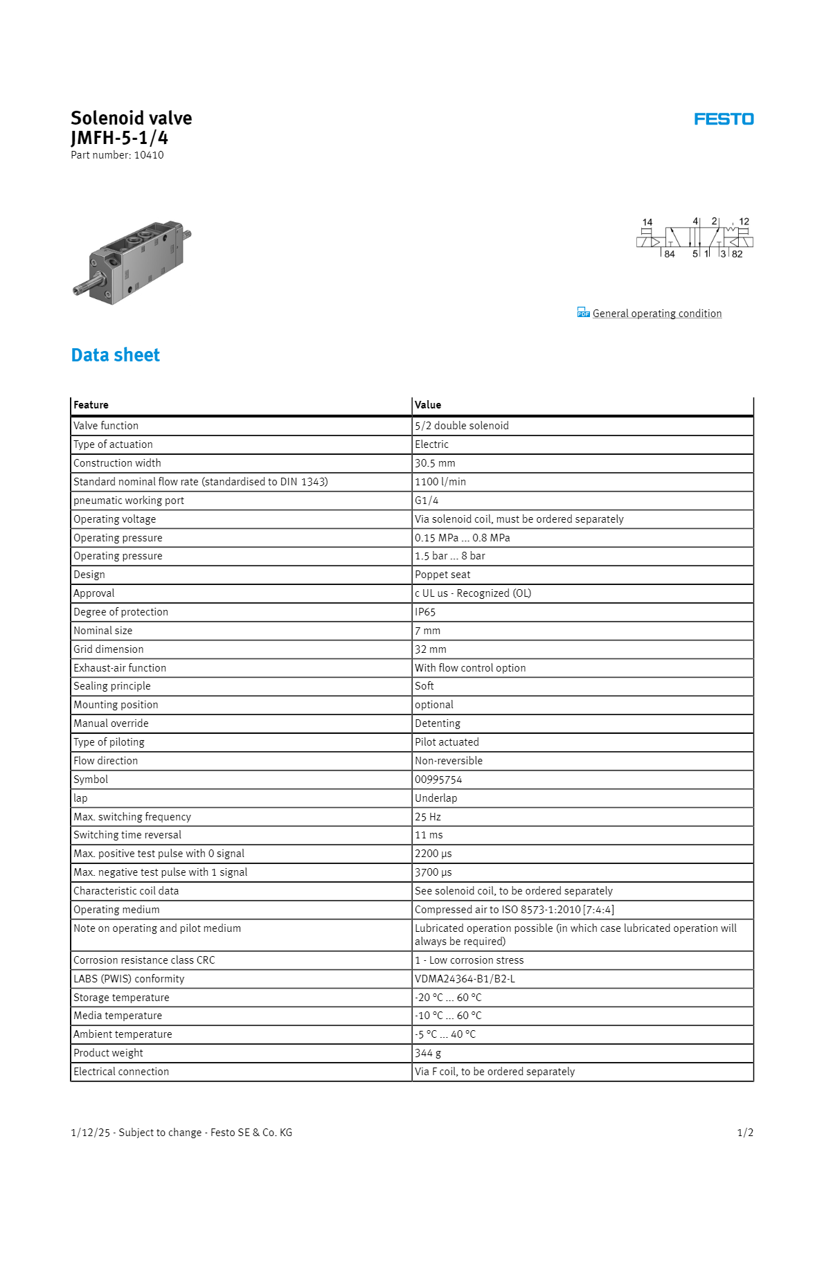 • Operating mediumCompressed air to ISO 8573-1:2010 [7:4:4]